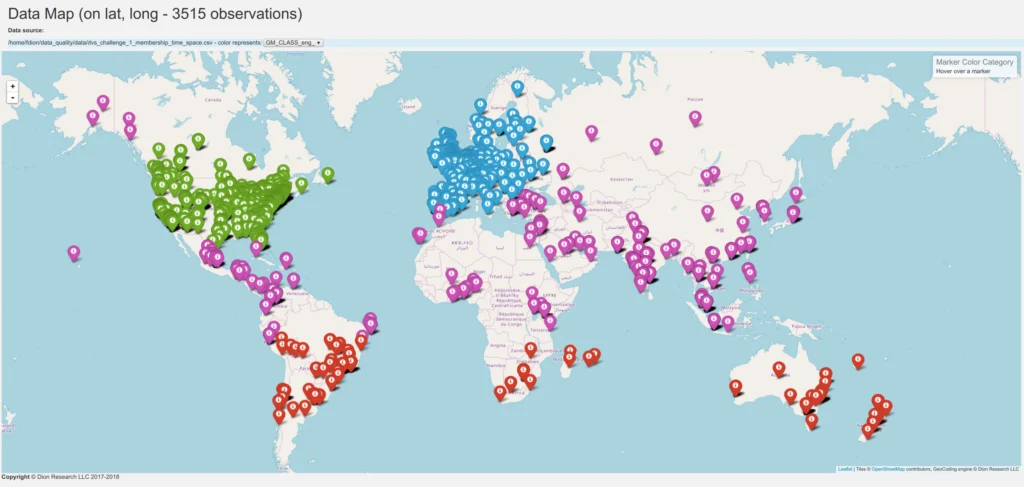 This was mostly a machine learning effort, more than a visualization effort. This is using leaflet for the interactive map. The feature is part of a data quality tool I built for all the data science work I do.