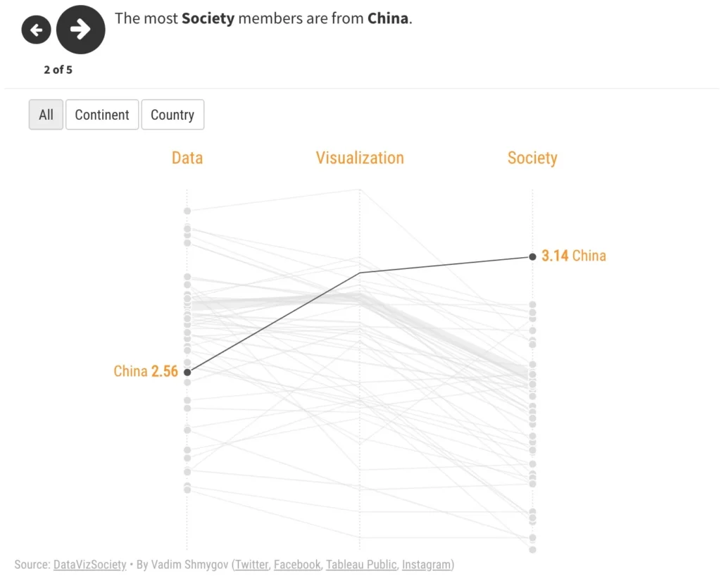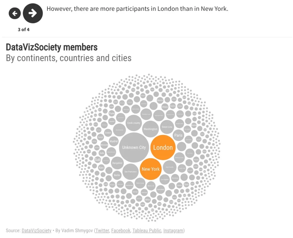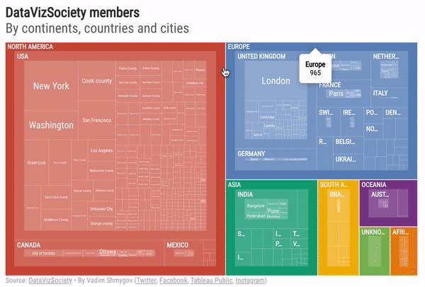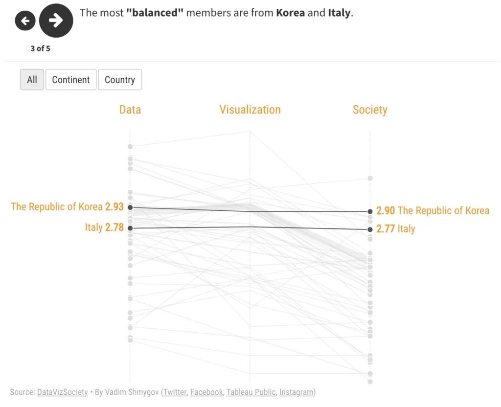 The most DataVizSociety Members are from North America, USA. Top-3 European cities by members — London, Paris and Madrid. However, there are more participants in London than in New York. The most Data and Visualization members are from Hong Kong. The most Society members are from China. The most “balanced” members are from Korea and Italy. The most self-critical members are from Ukraine, Vietnam and without country field at form response. Huge part of members thinks that they are lack of Society.