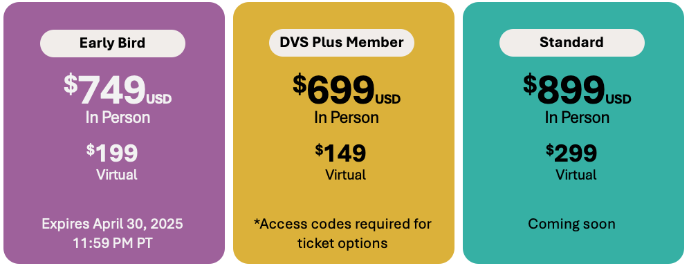 Not a DVS Plus member yet? Become a DVS Plus member to save 20% off in-person tickets and 50% off virtual tickets. DVS Plus members also access exclusive programs and offers such as mentorship and discounts to data viz courses and training. Learn more about joining here.